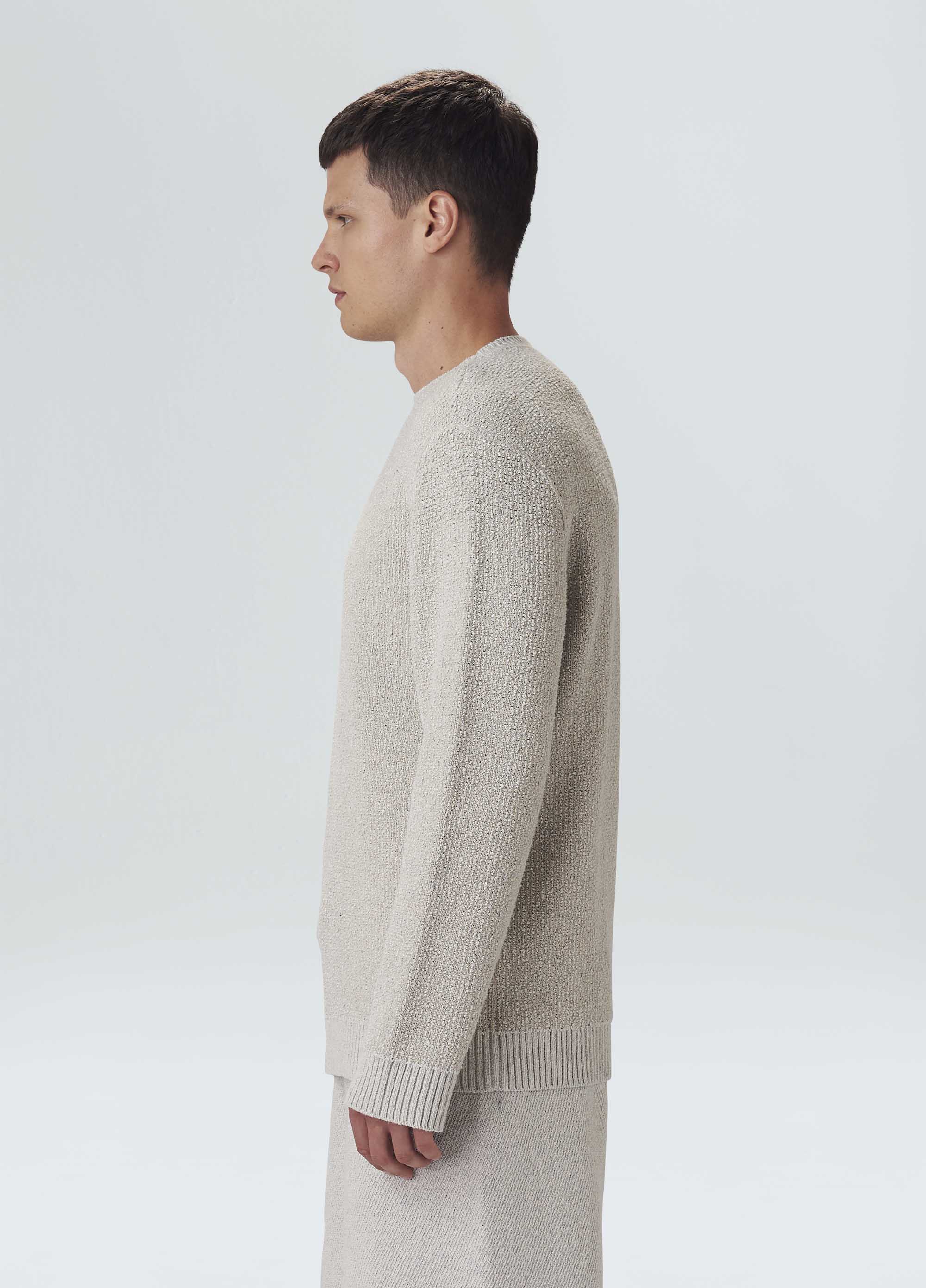 Raw material developed from the reuse of textile industry waste. In this process, fabric scraps are sorted by color, and transformed into a new fabric in a production process that does not use dyeing, thereby reducing water and energy consumption.