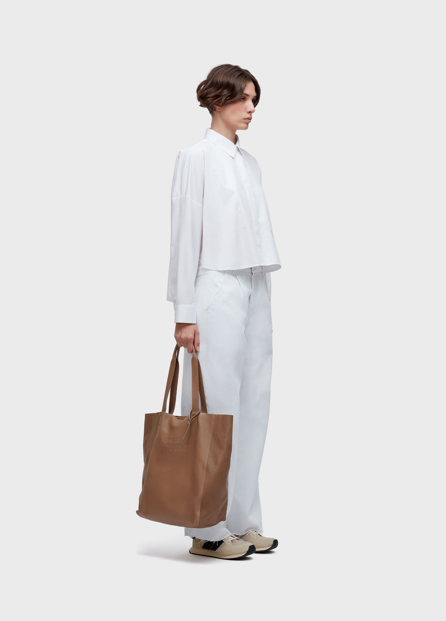 Oversized cropped shirt in 100% cotton. Long sleeves, invisible button closure, dropped shoulders.