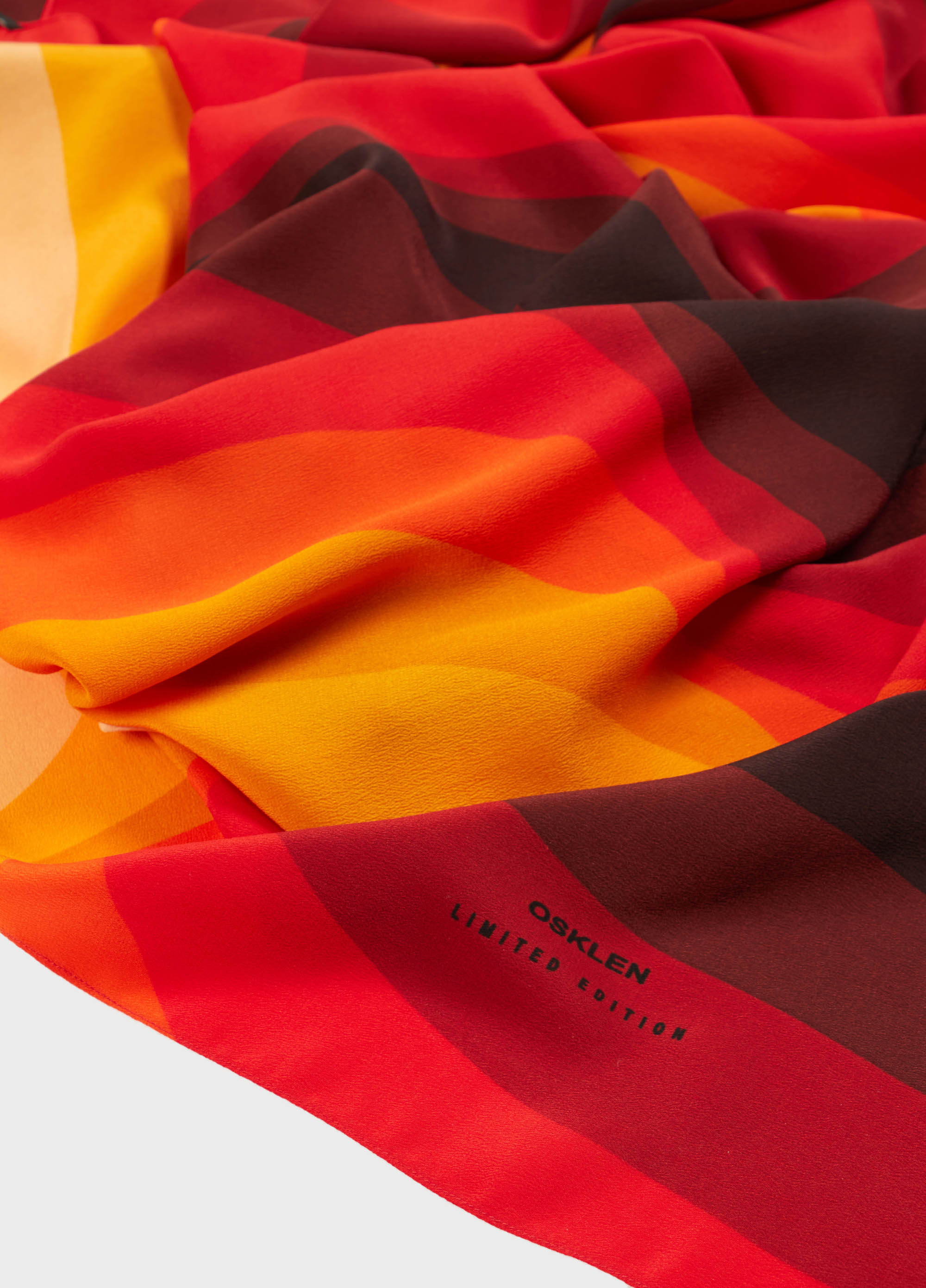 Rectangular scarf made of 100% silk, featuring an exclusive print from the collection. The scarf dimensions are 2m x 1m.
