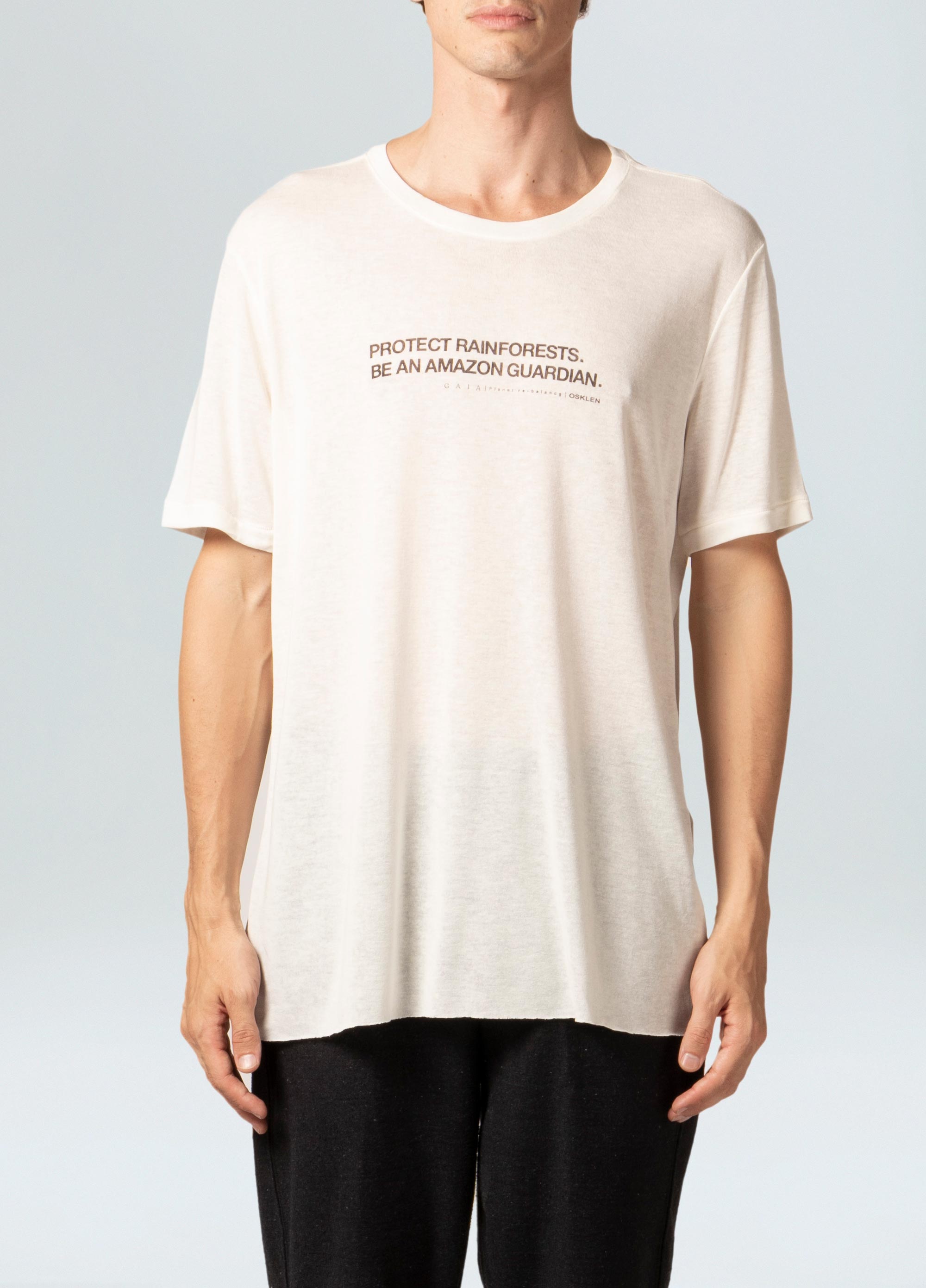 Mens viscose t-shirt, regular fit. Part of our Regenerate Life line. The e-viscose used by Osklen is made from wood pulp from reforestation and sustainable management certified by the Forest Stewardship Council (FSC), Program for the Endorsement of Forest Certification (PEFC) and EU Ecolabel. By following sustainable management criteria, the production of this viscose reduces water use and CO2 emissions by 50% when compared to traditional viscose.