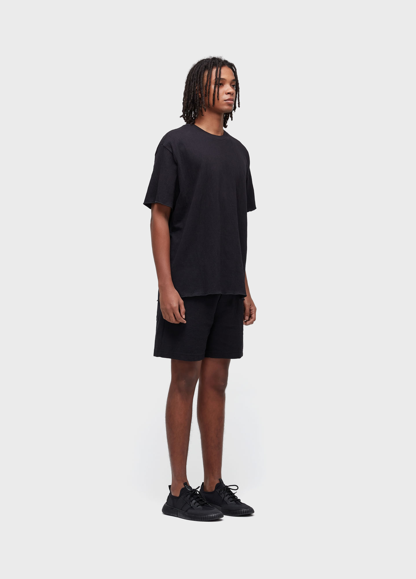 Men’s oversized T-shirt made from textured knit fabric, composed of 96% cotton and 4% elastane. The piece is finished with Organic Mint Wash, a natural softening process based on organic mint essentia